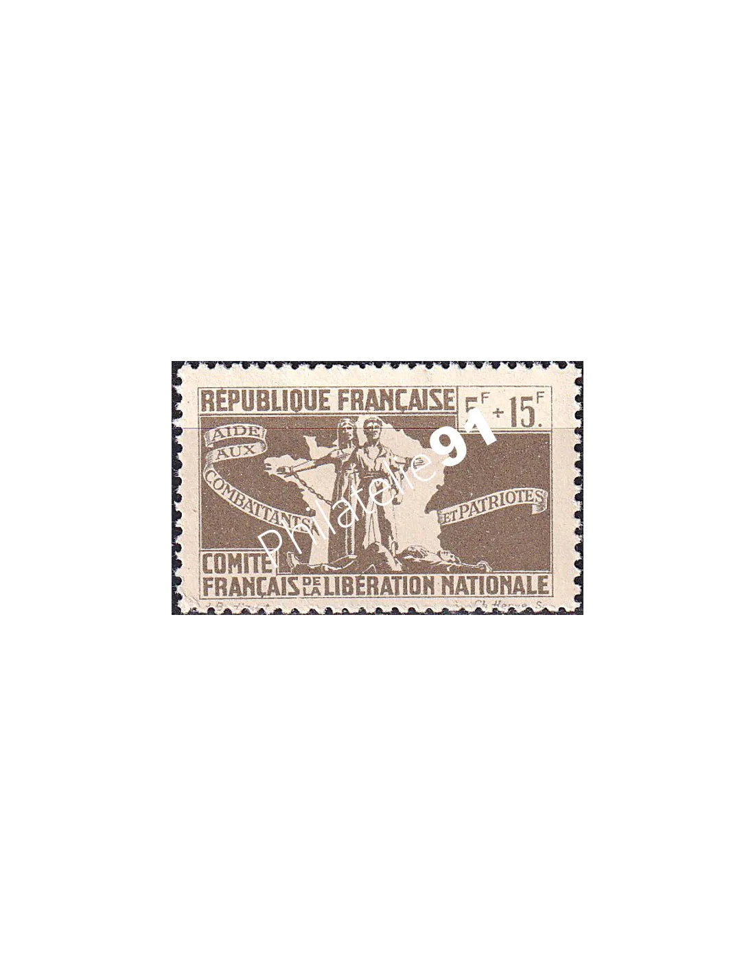 5 f. + 15 f. gris-brun.