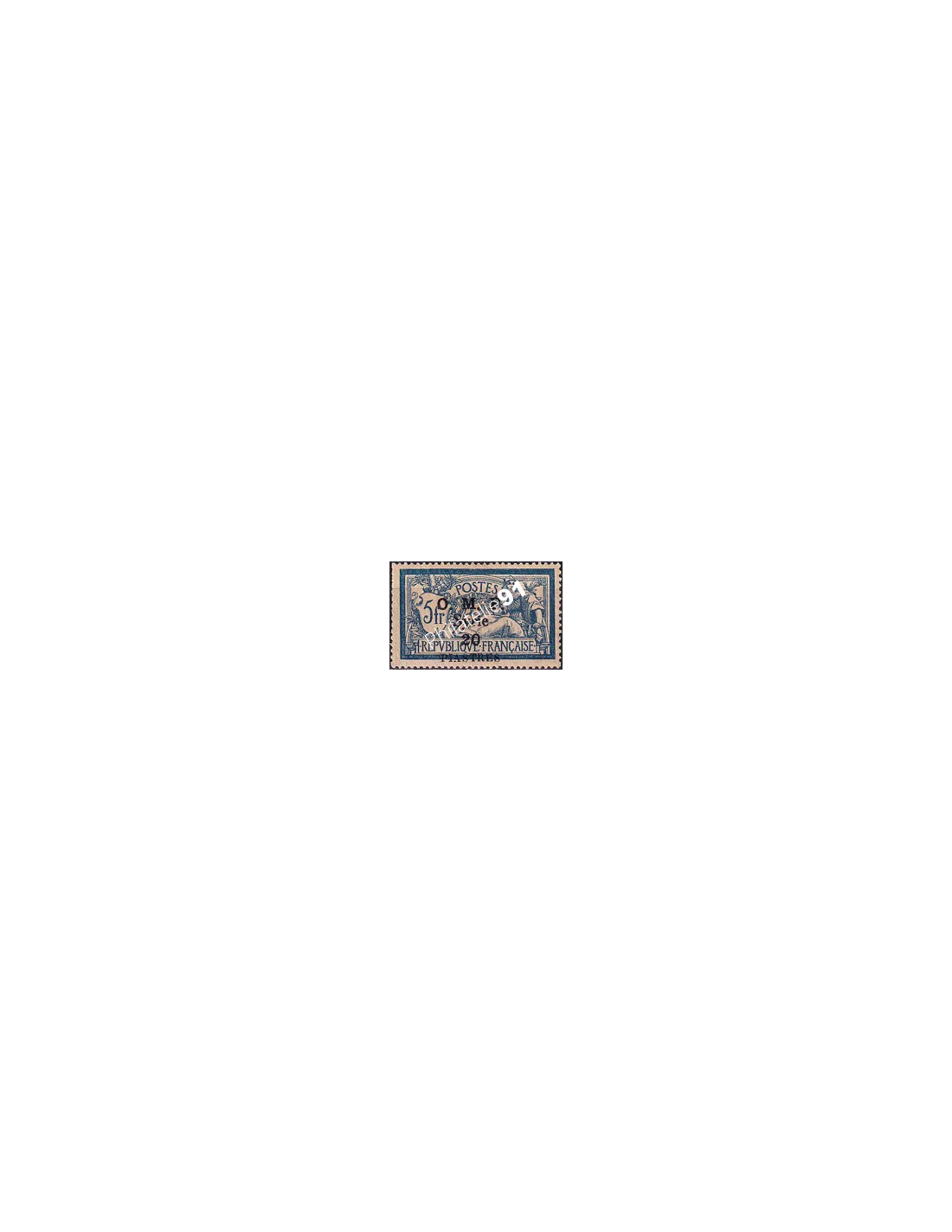 Timbre de France de 1900-1906 surchargé avec nouvelle valeur et mention "O.M.F. - Syrie" ("O.M.F." pour Occupation Militaire Française).