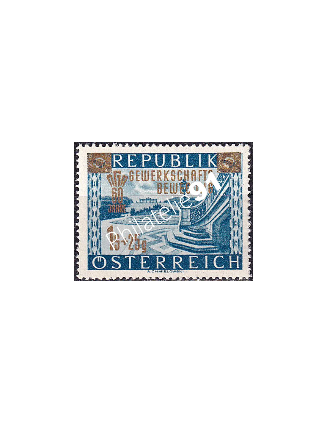 AUTRICHE - n° 820 ** - 60 ans du syndicalisme ouvrier - Timbre surchargé