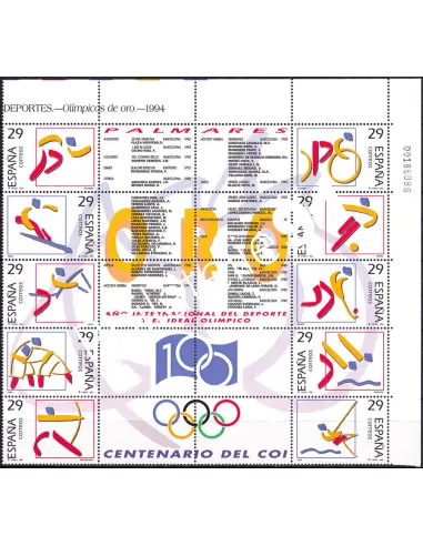 ESPAGNE - n° 2916 à 2925 ** (Bloc de 10 timbres et 10 vignettes) - 100 ans du C.I.O. - Médailles d'or olympiques espagnoles