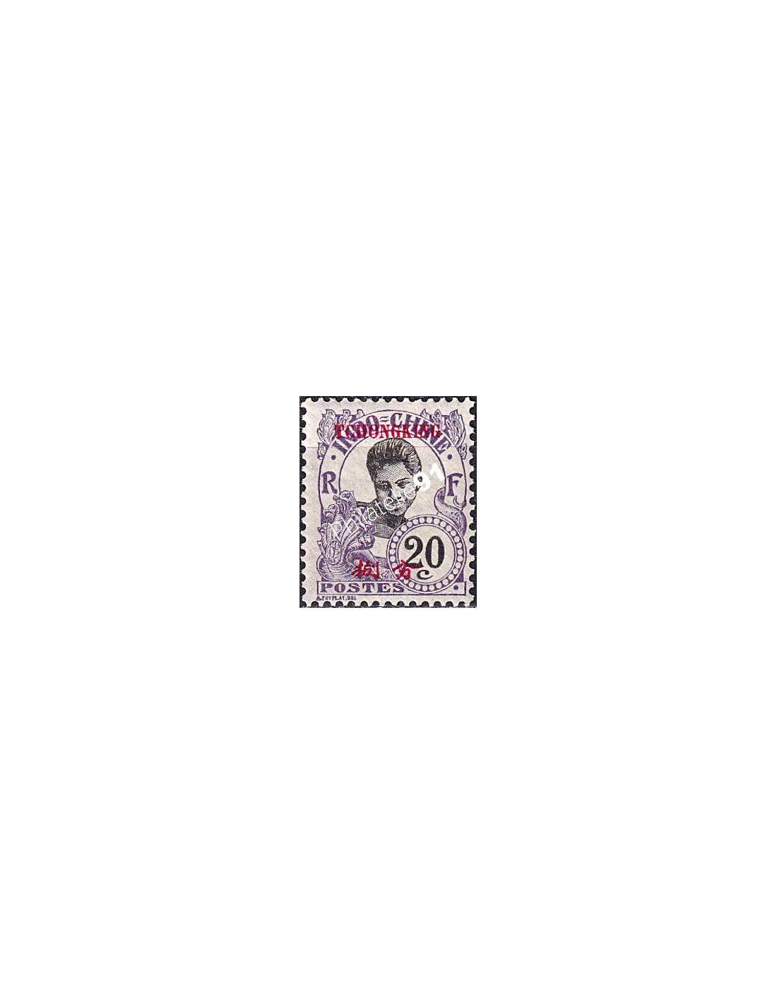 Timbre d'Indochine de 1907, surchargé avec mention "TCHONGKING" et valeur en monnaie locale.