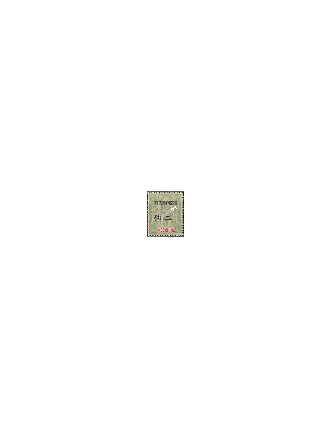 Timbre d'Indochine de 1892-1900, surchargé avec mention "YUNNANSEN" et valeur en monnaie locale.