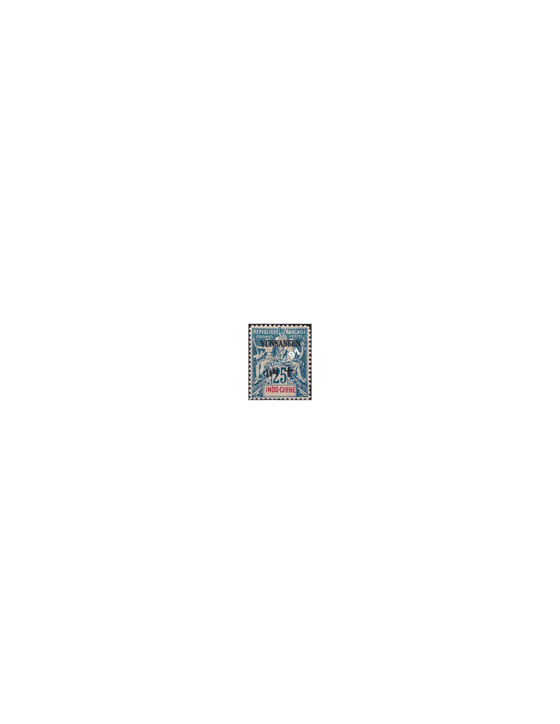 Timbre d'Indochine de 1892-1900, surchargé avec mention "YUNNANSEN" et valeur en monnaie locale.