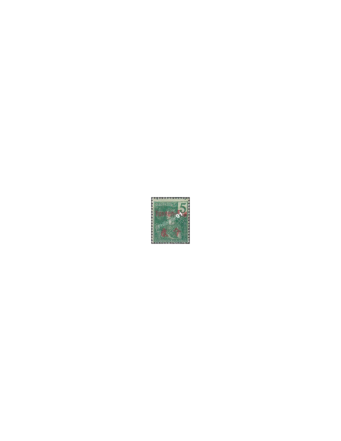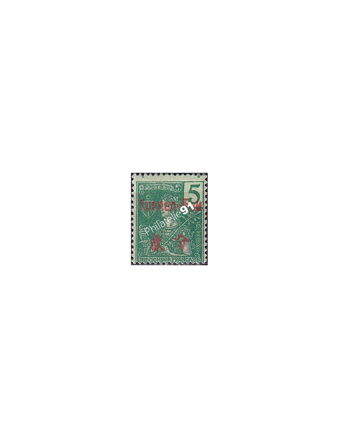 Timbre d'Indochine de 1892-1904, surchargé avec mention "Yunnan-Fou" et valeur en monnaie locale.