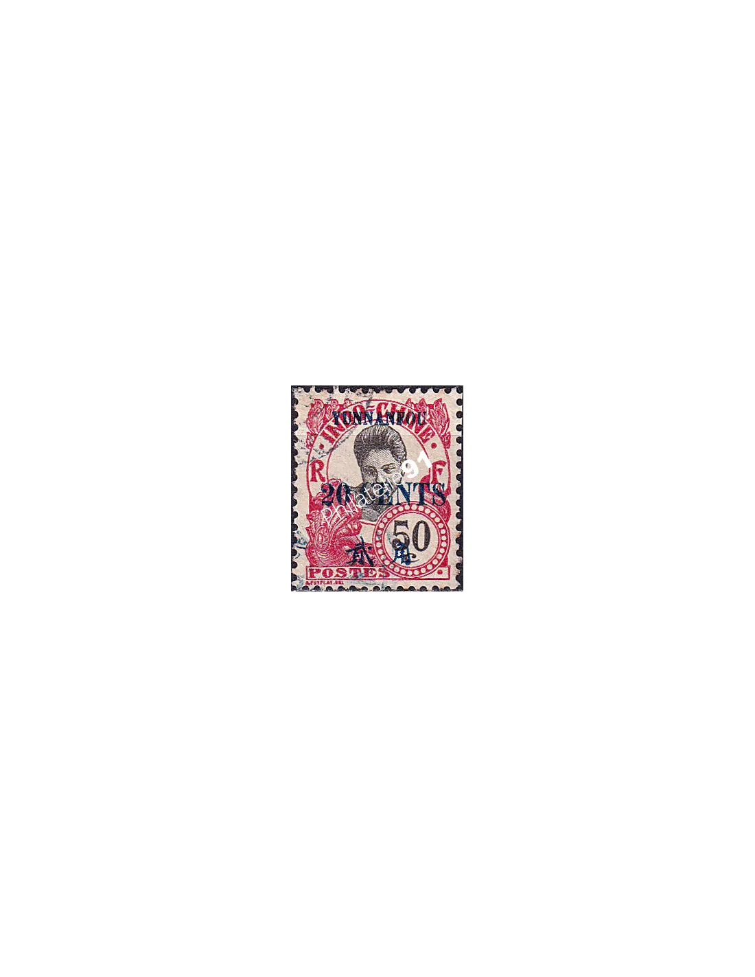 Timbre d'Indochine de 1919, surchargé en Cents, avec surcharge supplémentaire "YUNNANFOU" et valeur en monnaie locale.