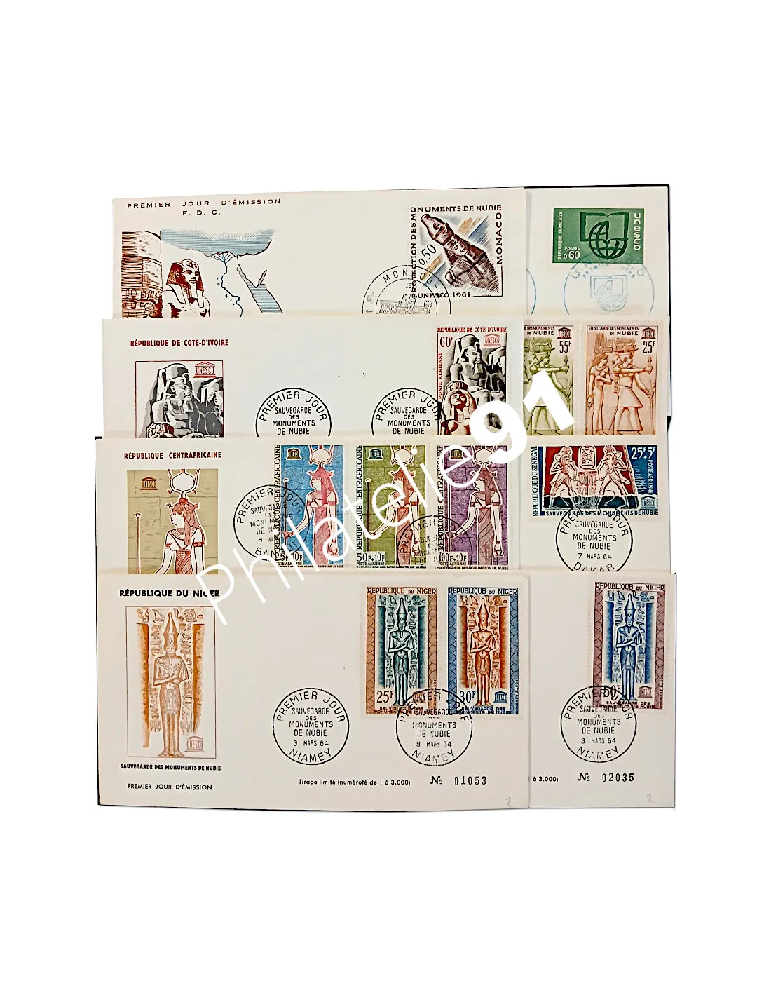 Lot de 8 enveloppes 1er jour sauvegarde des monuments de Nubie.