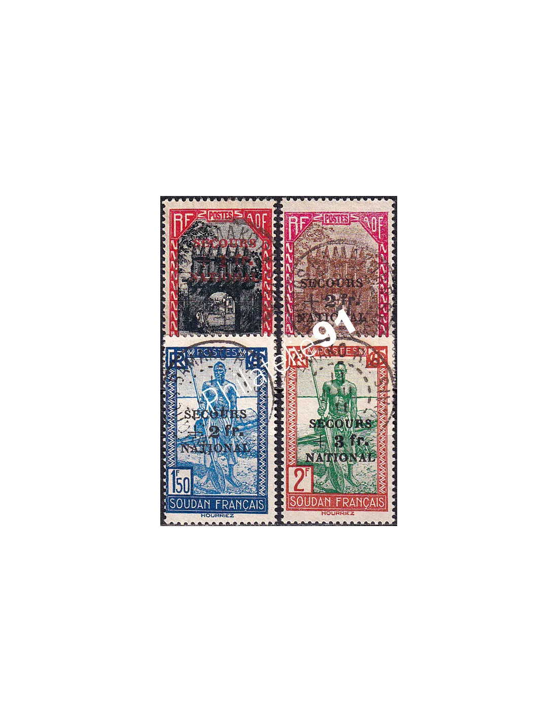 SOUDAN - n° 125 à 128 oblitérés - Timbres surchargés "SECOURS NATIONAL" (250923-13)