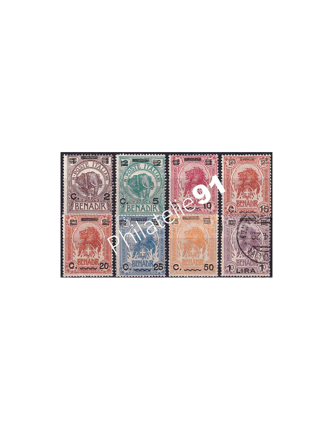 SOMALIE ITALIENNE - n° 70 à 77 (7 timbres *, 1 timbre oblitéré) - Timbres de 1903 surchargés (250924-4)