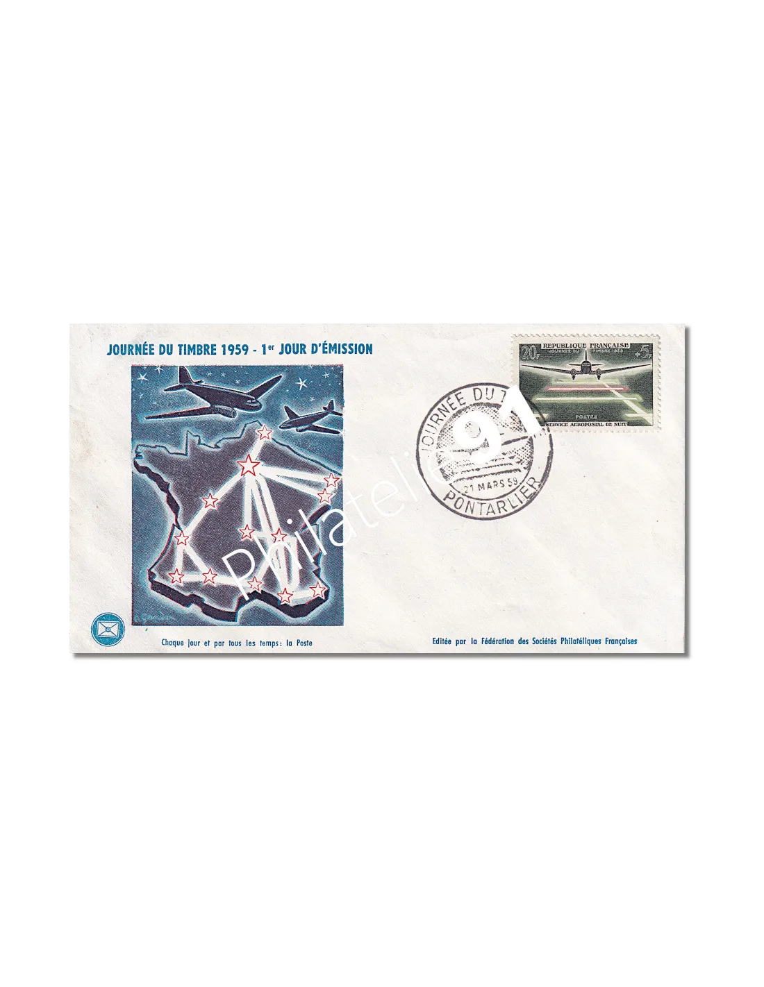 FRANCE - enveloppe 1er jour oblitérée de la Journée du Timbre 1959 - Oblitération de Pontarlier (250924-31)