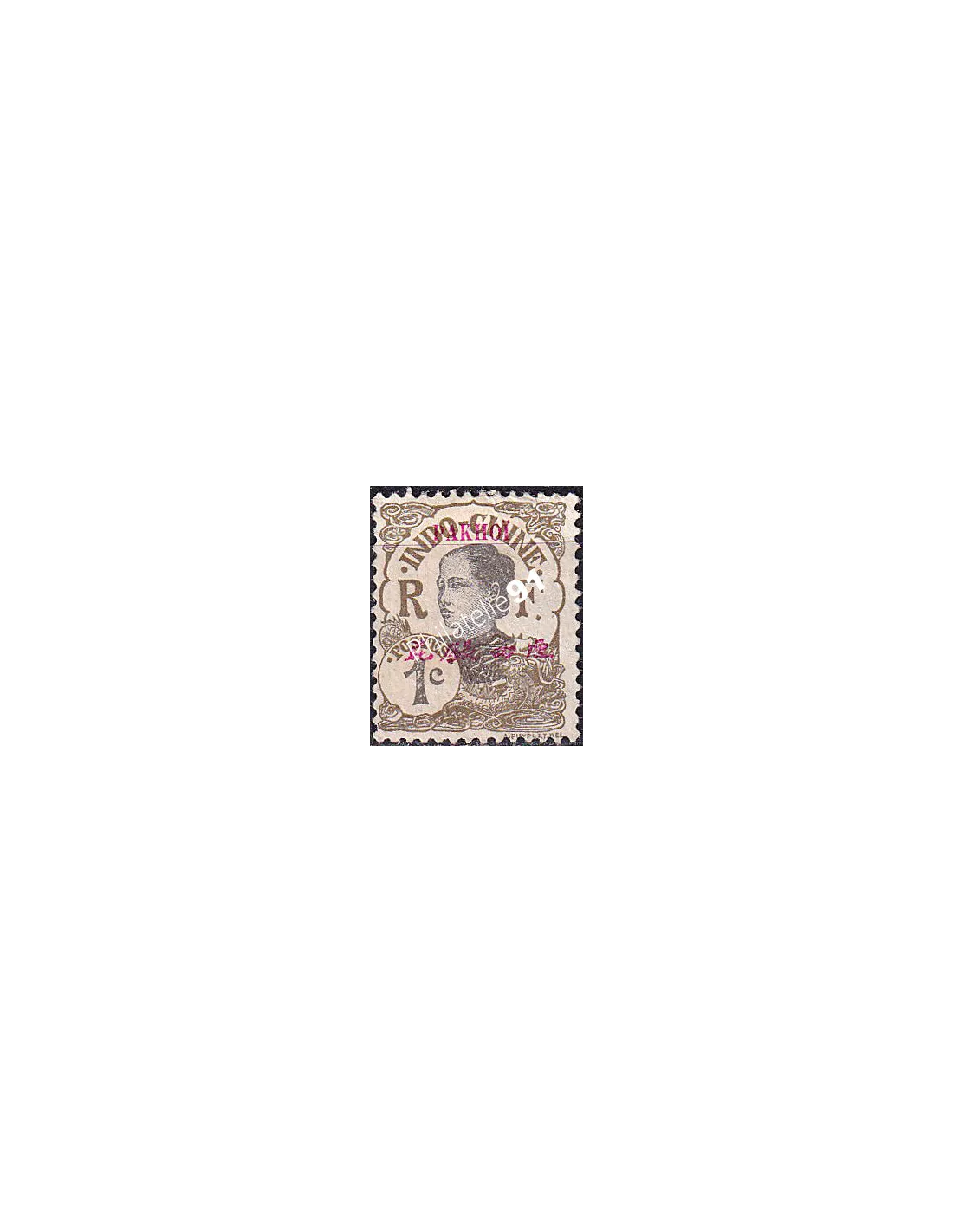 Timbre d'Indochine de 1907 surchargé avec mention "PAKHOÏ" et valeur en monnaie chinoise.
