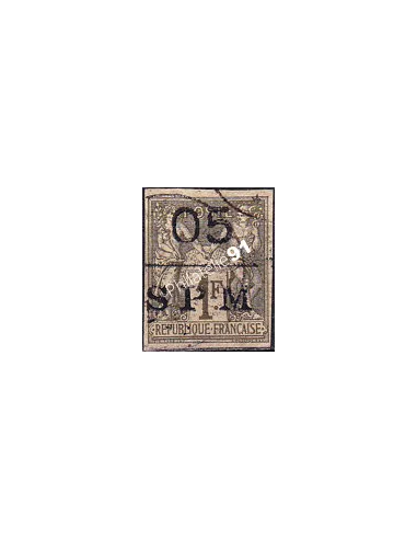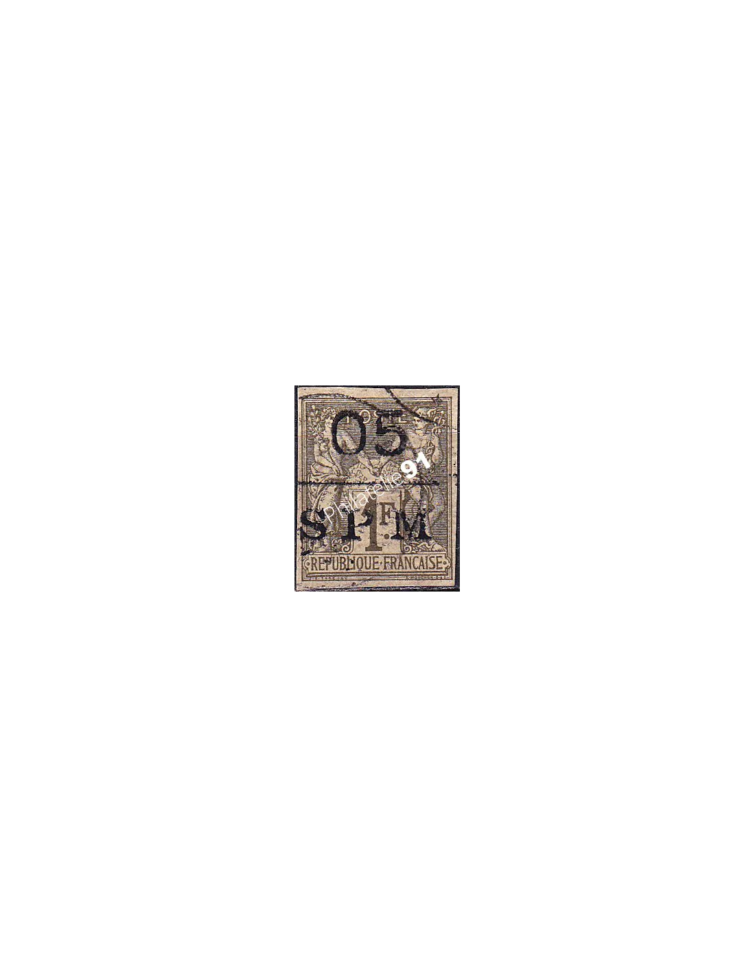 Timbre des colonies françaises de 1877, surchargé avec nouvelle valeur et mention "SPM".