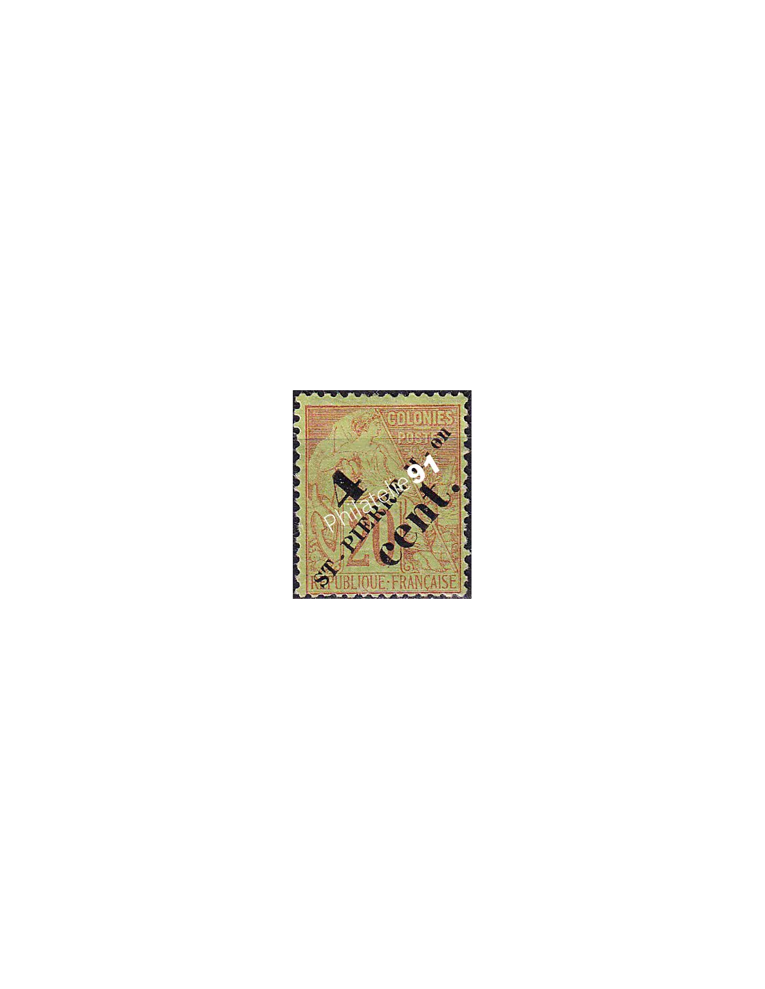 Timbre des colonies françaises de 1881, surchargé avec nouvelle valeur et mention "ST-PIERRE M-on".