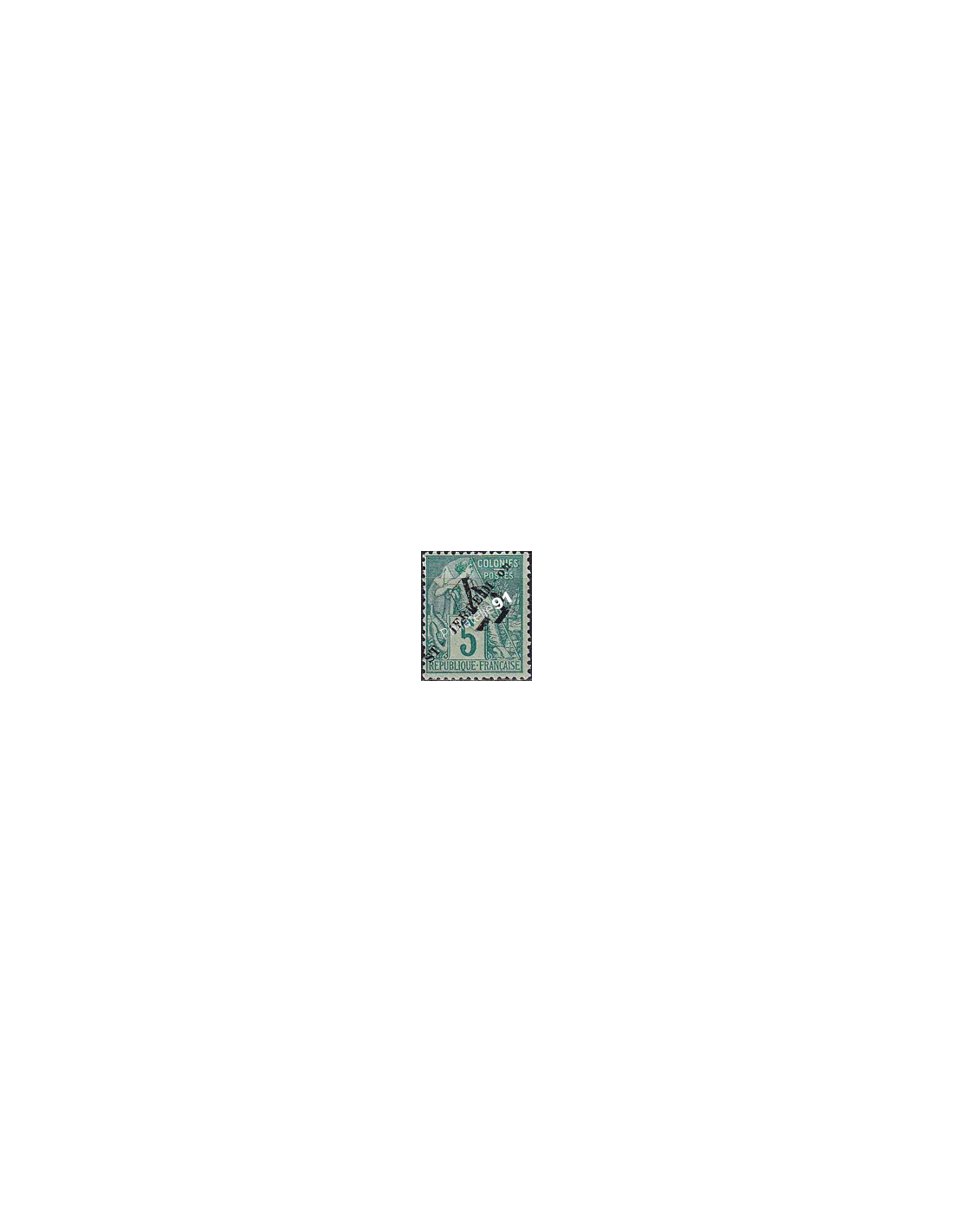 Timbre des colonies françaises d'octobre 1891 (surchargé "ST-PIERRE M-on"), avec nouvelle valeur en surcharge supplémentaire.