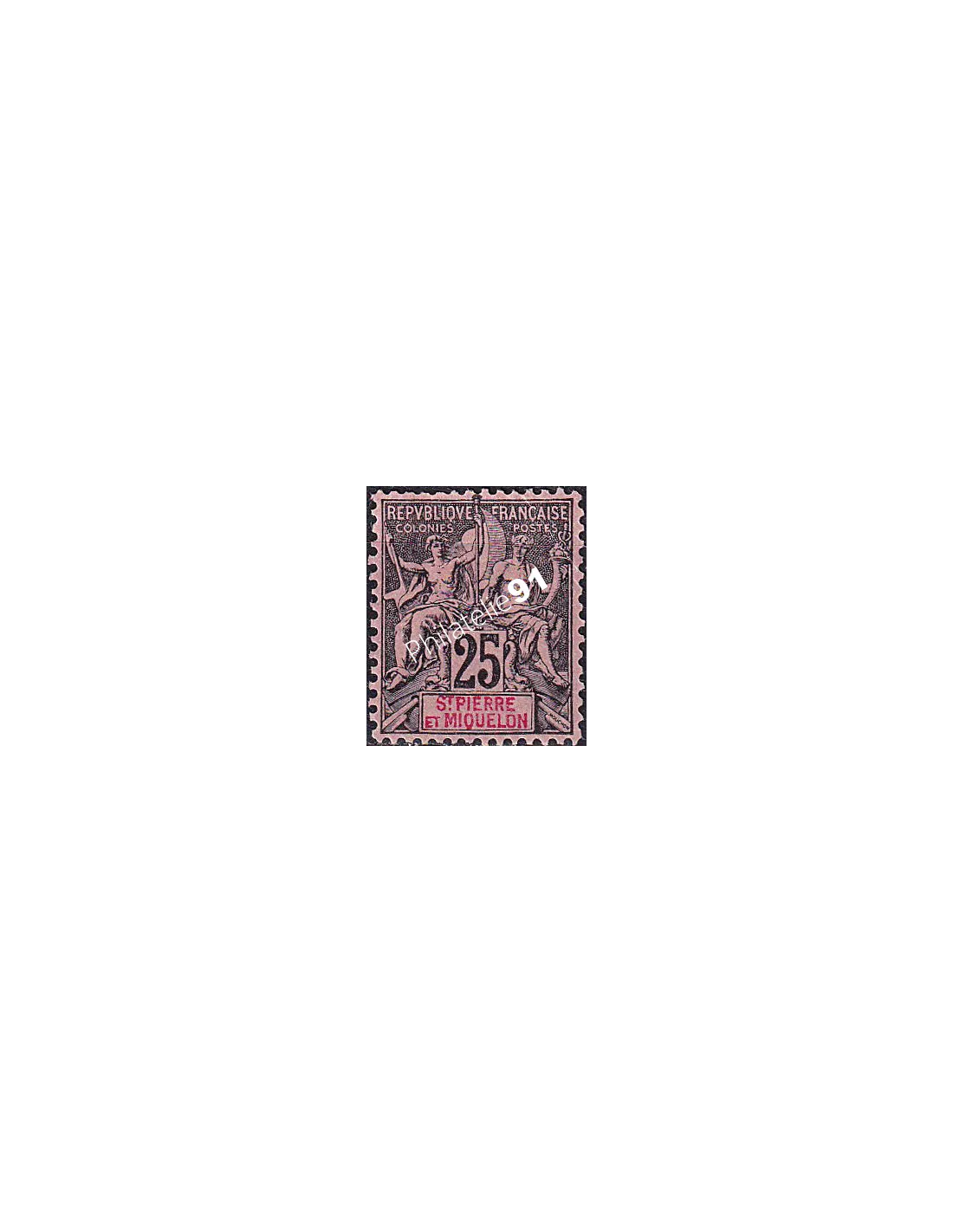 Timbre avec mention "ST-PIERRE ET MIQUELON" dans le cartouche.