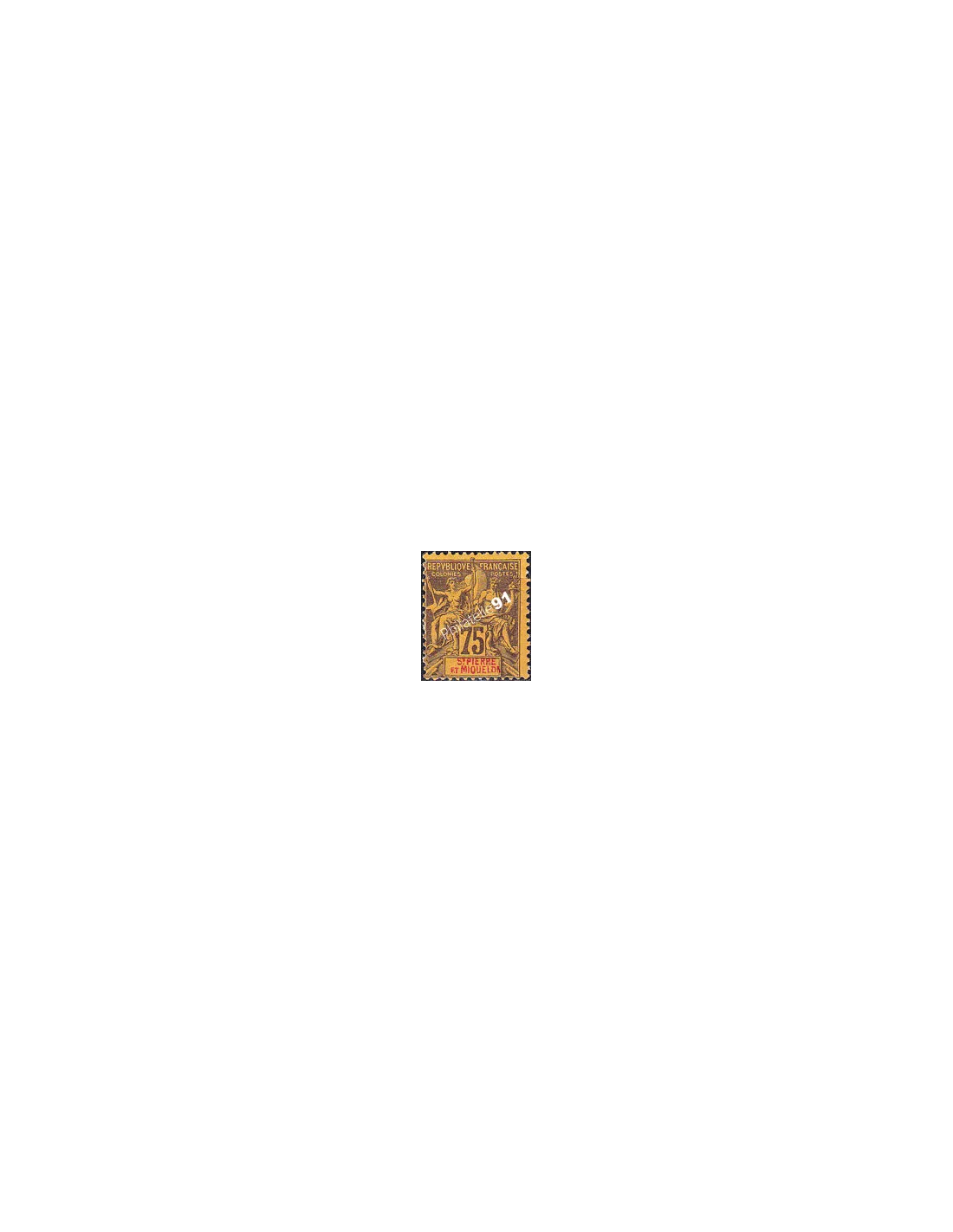 Timbre avec mention "ST-PIERRE ET MIQUELON" dans le cartouche.