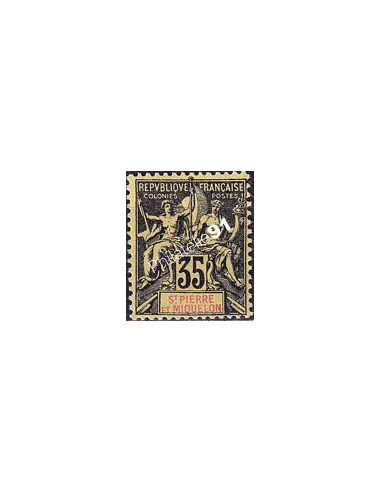 Timbre avec mention "ST-PIERRE ET MIQUELON" dans le cartouche.