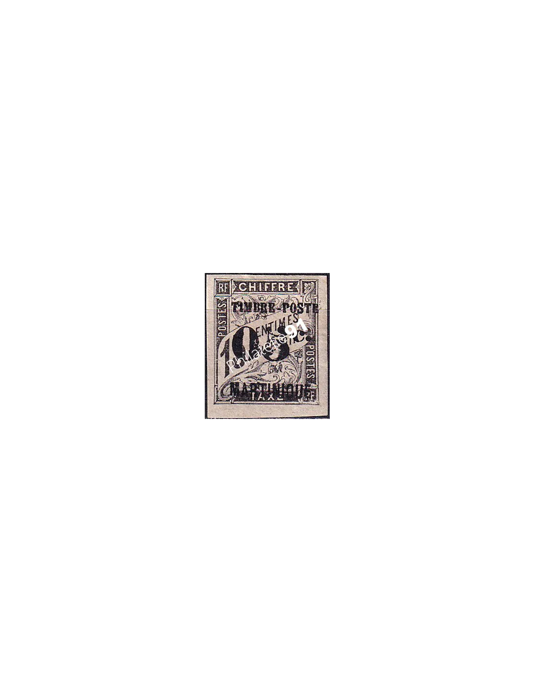Timbre-taxe des colonies françaises de 1884, surchargé avec nouvelle valeur et mention "TIMBRE-POSTE - MARTINIQUE".