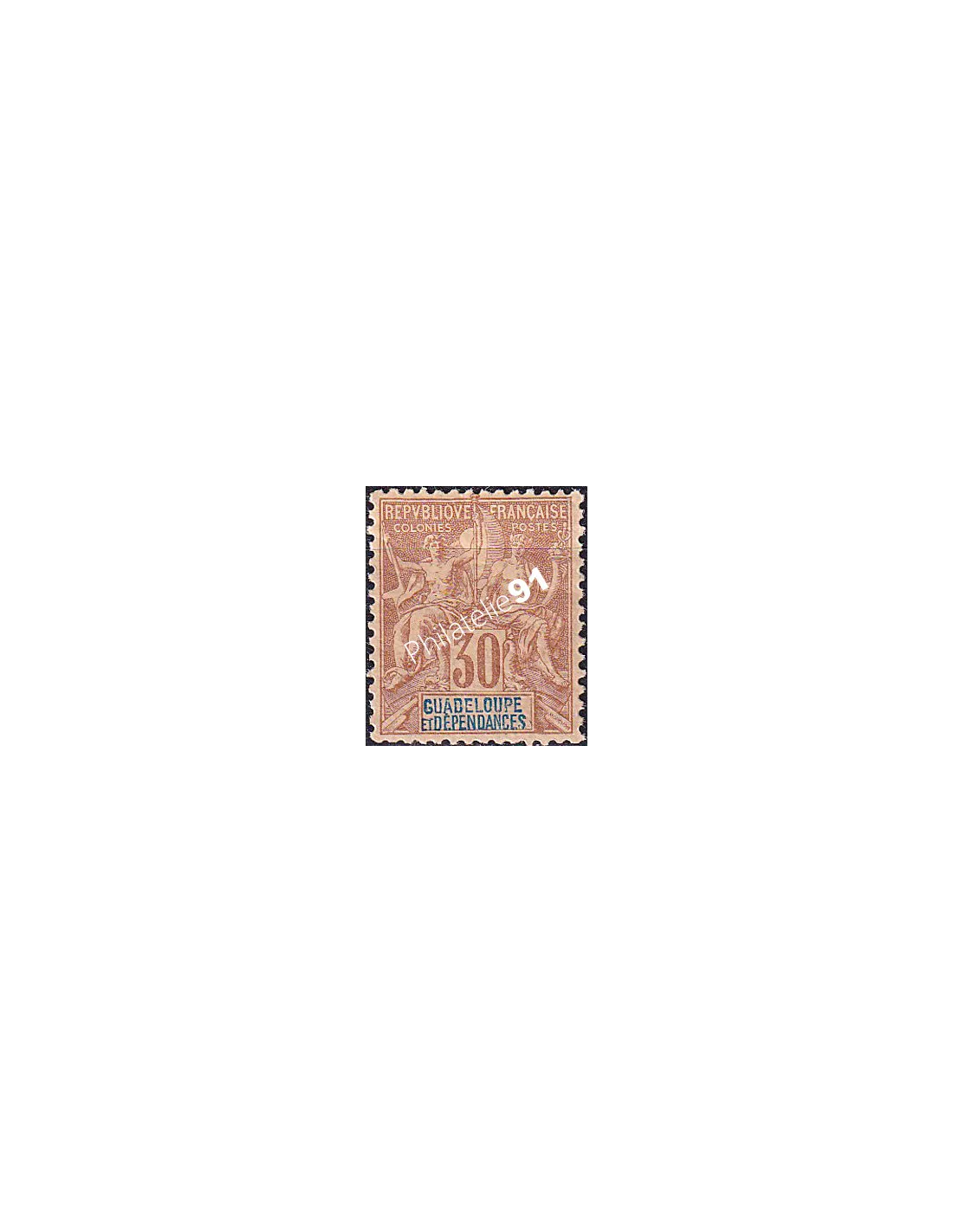 Timbre avec mention "GUADELOUPE ET DÉPENDANCES" dans le cartouche.