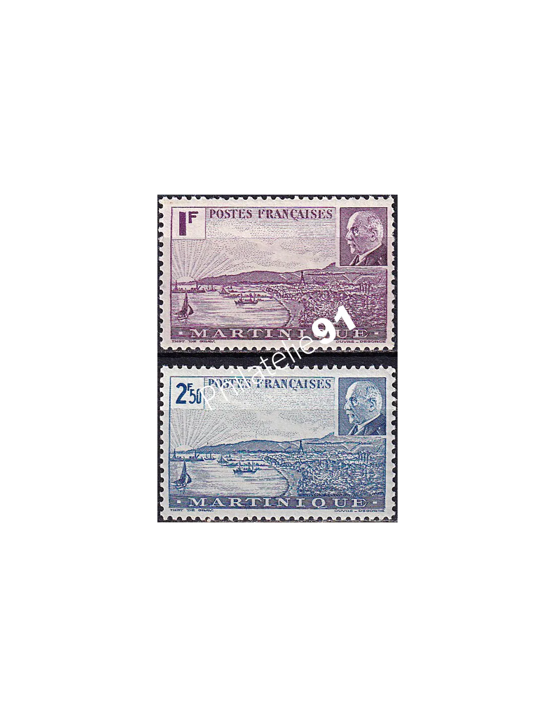 MARTINIQUE - n° 189 à 190 * - Vue de Fort-de-France et effigie du Maréchal Pétain