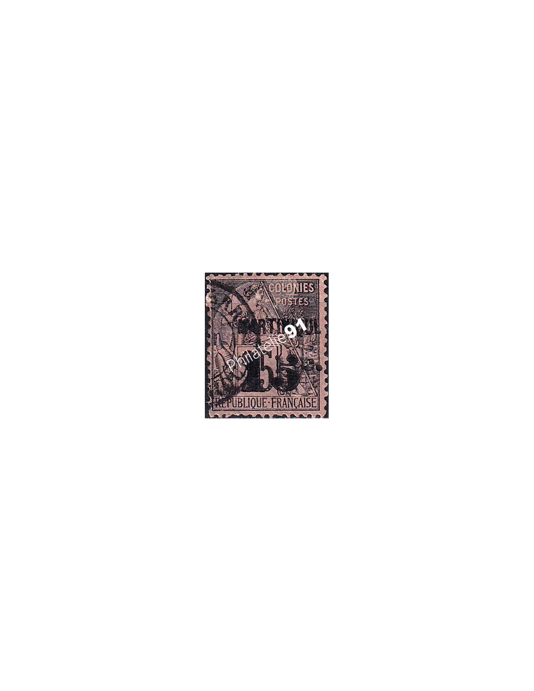 Timbre des colonies françaises de 1881, surchargé avec nouvelle valeur et mention "MARTINIQUE".