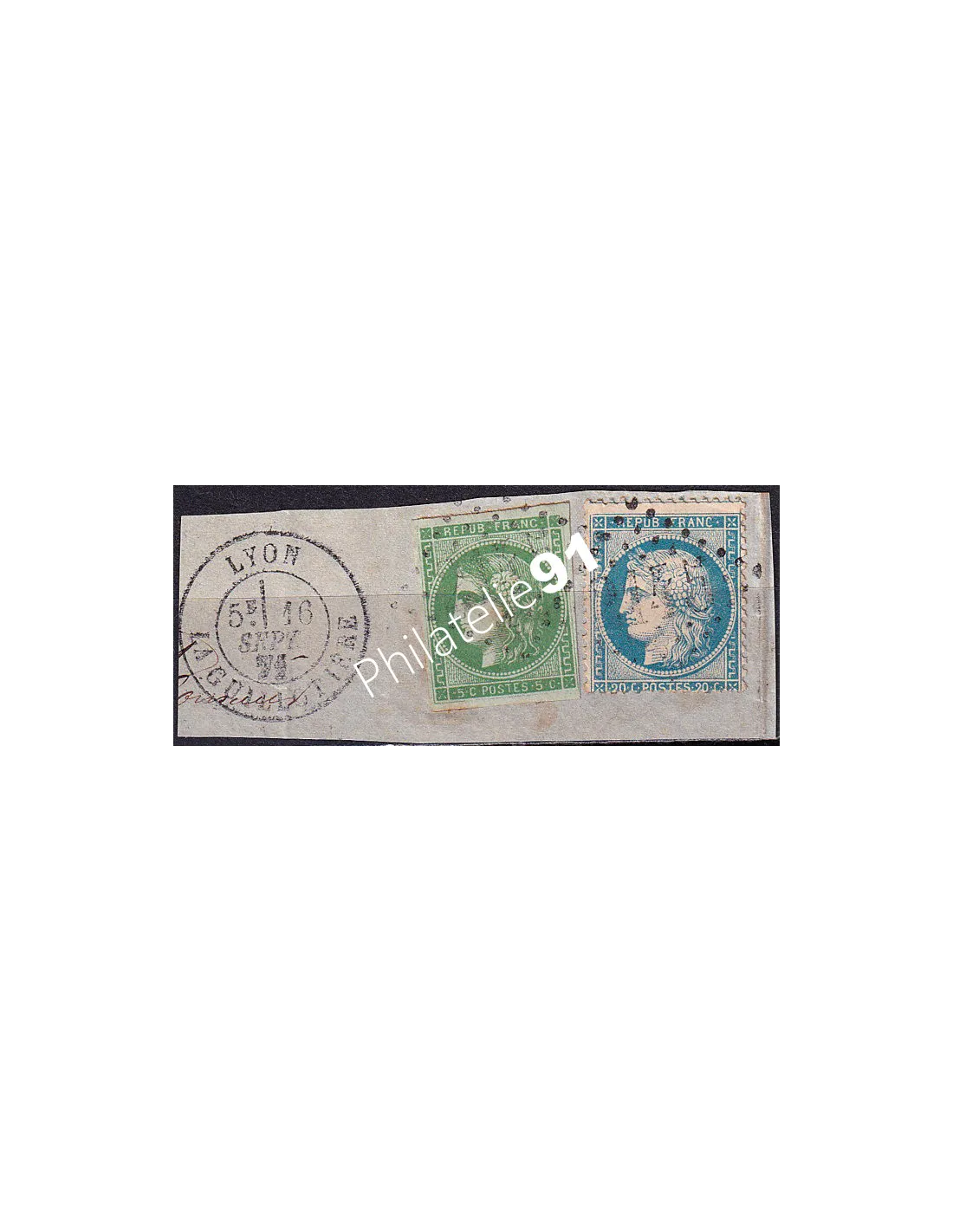 n° 42B non dentelé + n° 37 oblitérés sur fragment - Types Cérès (251027-10)