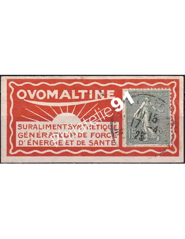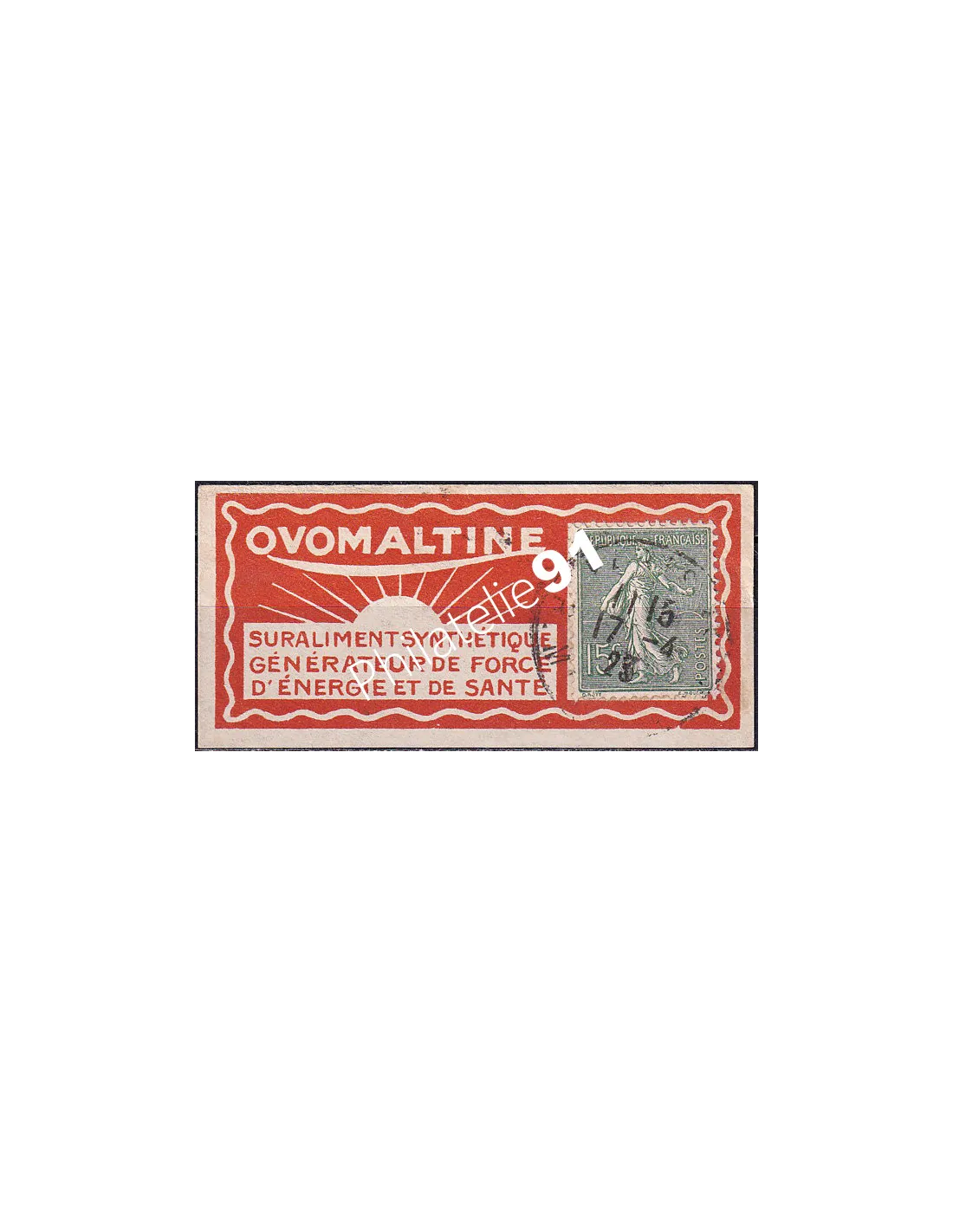 n° 130 oblitéré sur porte-timbre publicitaire (Ovomaltine) - Type Semeuse lignée de Roty (251028-4)