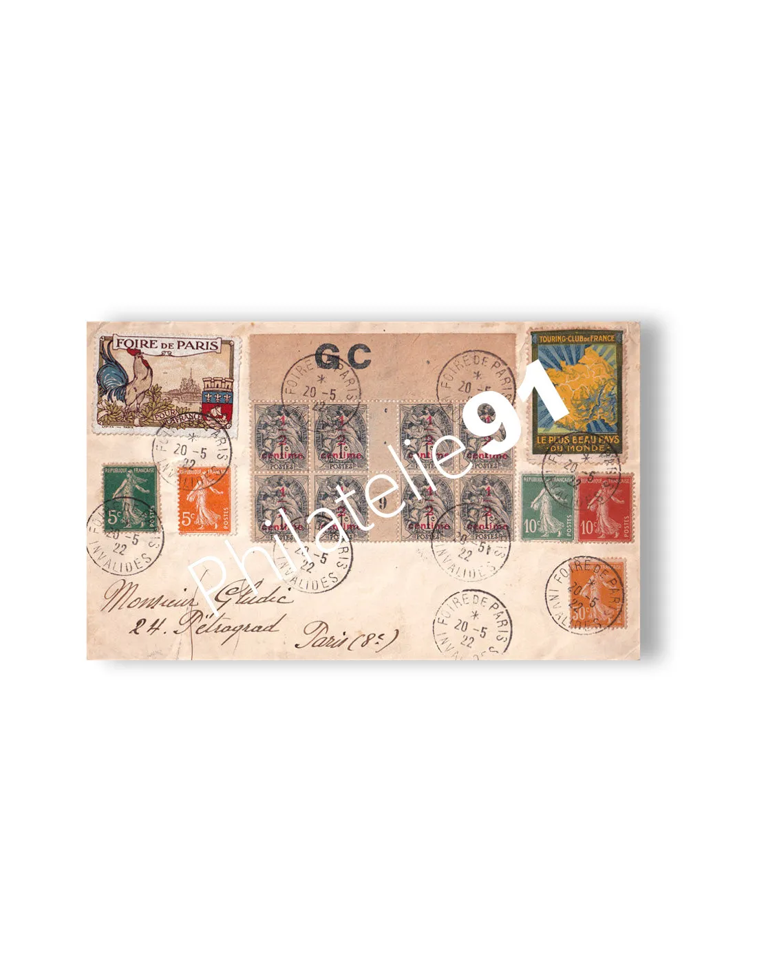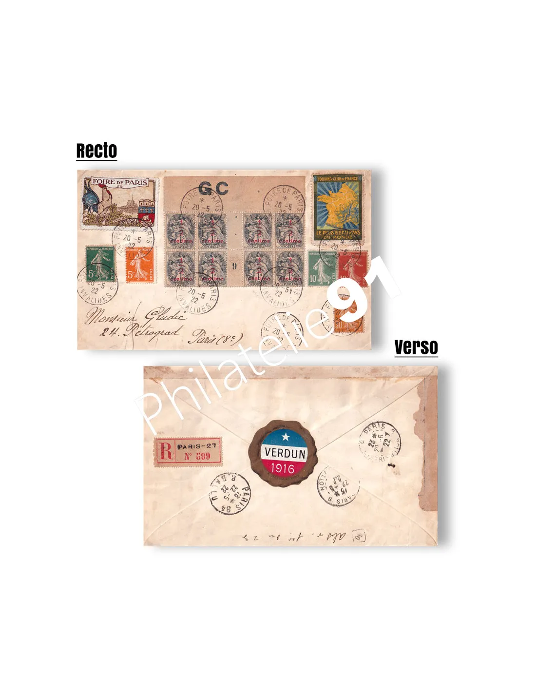 FRANCE - Enveloppe de la Foire de Paris 1922 en Recommandé - Avec vignettes et une manchette "GC" avec millésime 9 (251029-11)