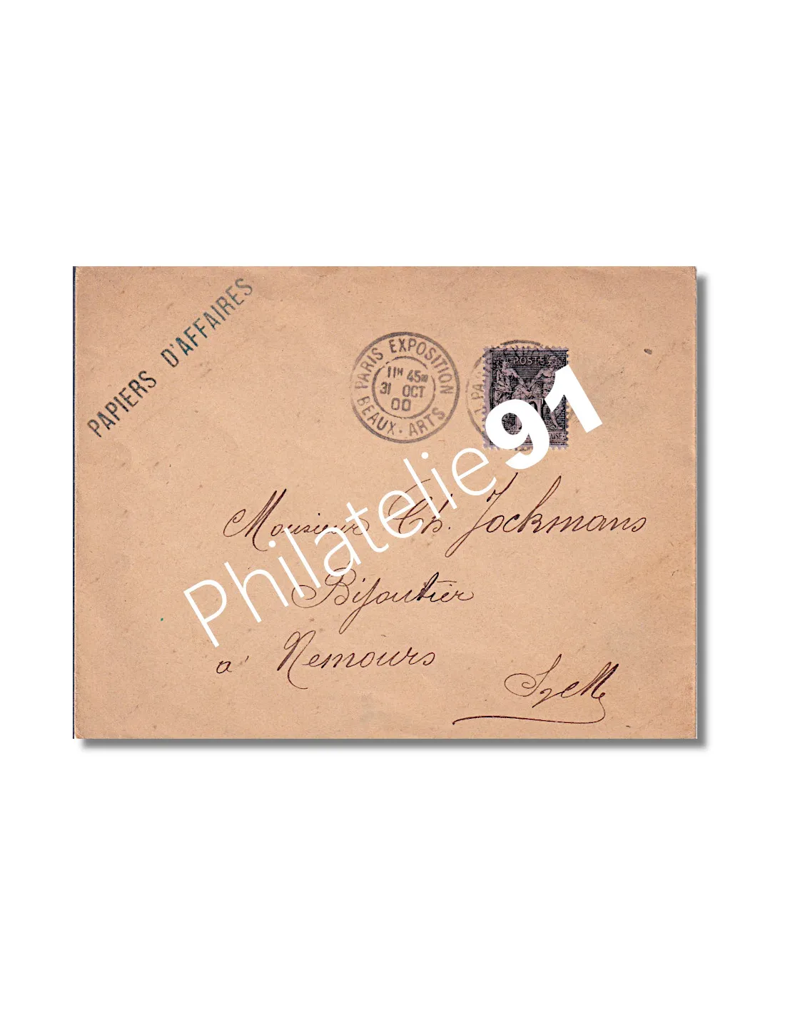 Enveloppe de paris EXPO à destination de Nemours griffe papier d'affaire.