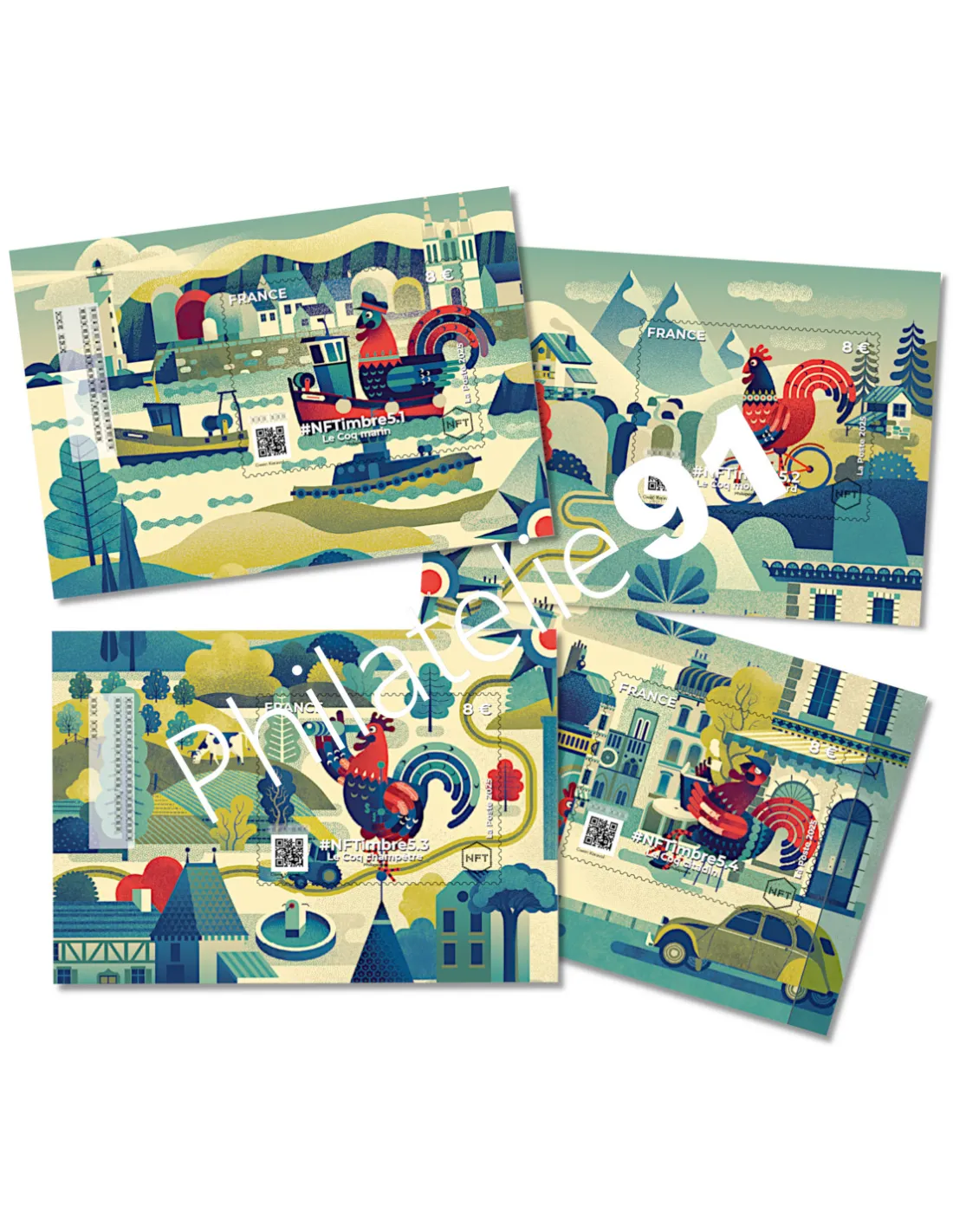 À travers un univers visuel riche et narratif, chaque NFTimbre transpose le coq dans un paysage typique du territoire : littoral, montagne, campagne et ville.
