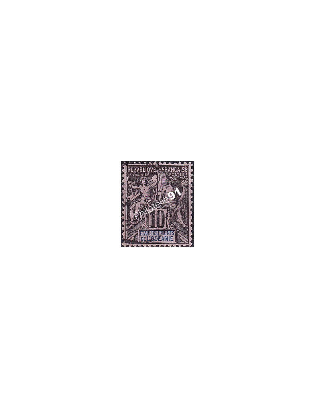 Timbre avec mention "ÉTABLISSEMENTS DE L'OCÉANIE" dans le cartouche.