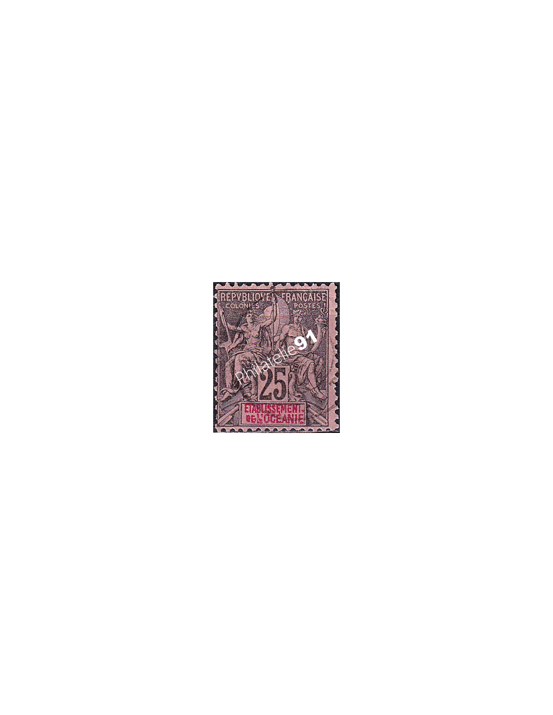 Timbre avec mention "ÉTABLISSEMENTS DE L'OCÉANIE" dans le cartouche.
