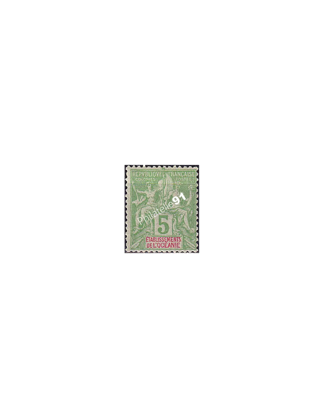 Timbre avec mention "ÉTABLISSEMENTS DE L'OCÉANIE" dans le cartouche.