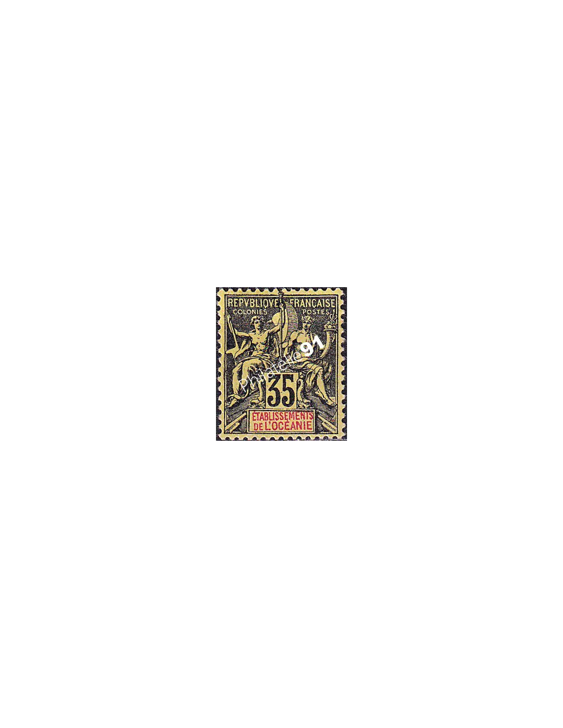 Timbre avec mention "ÉTABLISSEMENTS DE L'OCÉANIE" dans le cartouche.