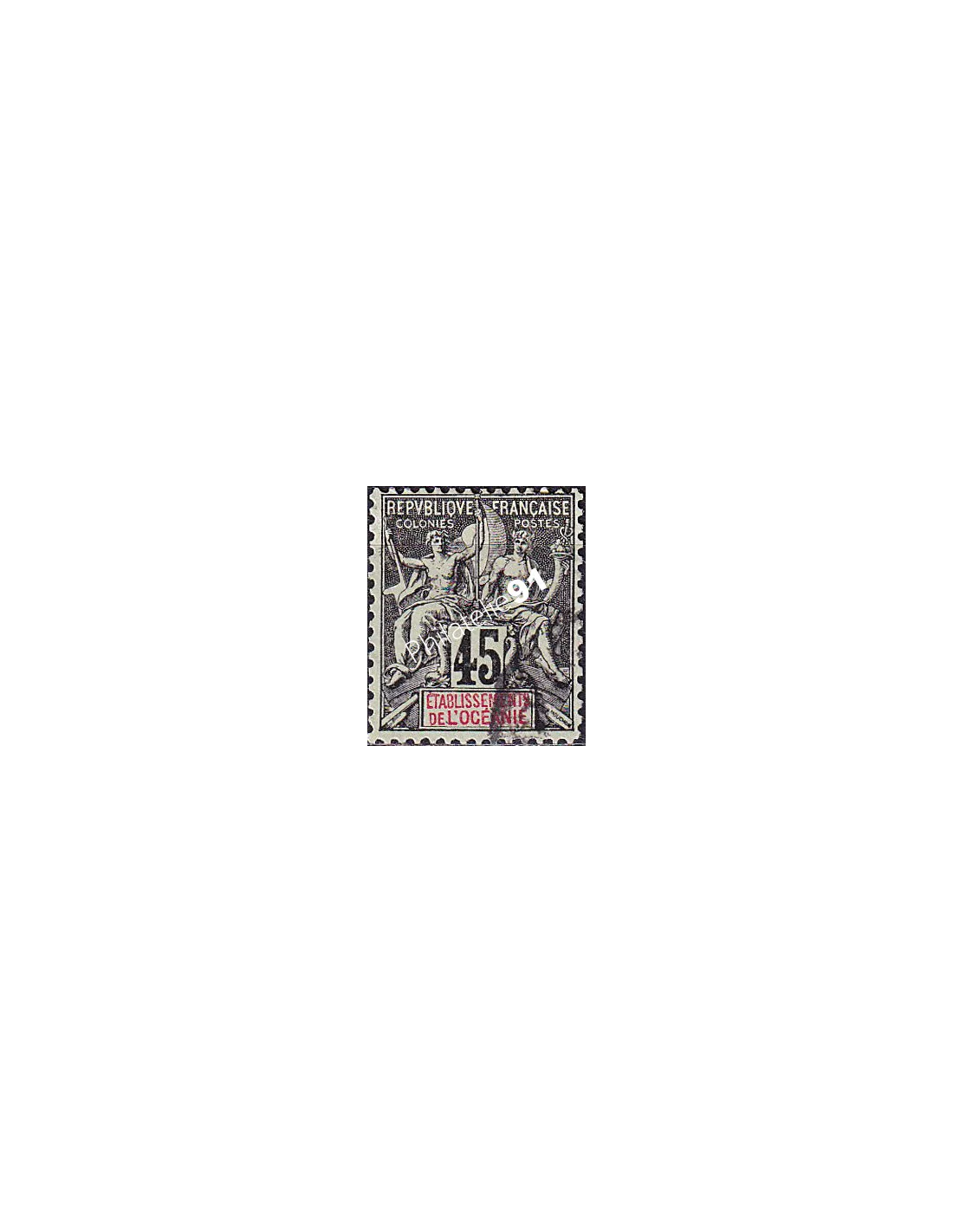 Timbre avec mention "ÉTABLISSEMENTS DE L'OCÉANIE" dans le cartouche.