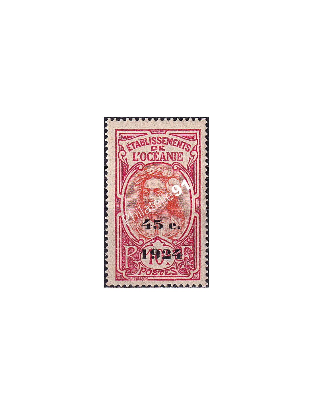 OCEANIE - n° 65 ** - Tahitienne - Timbre surchargé avec nouvelle valeur et date "1924"