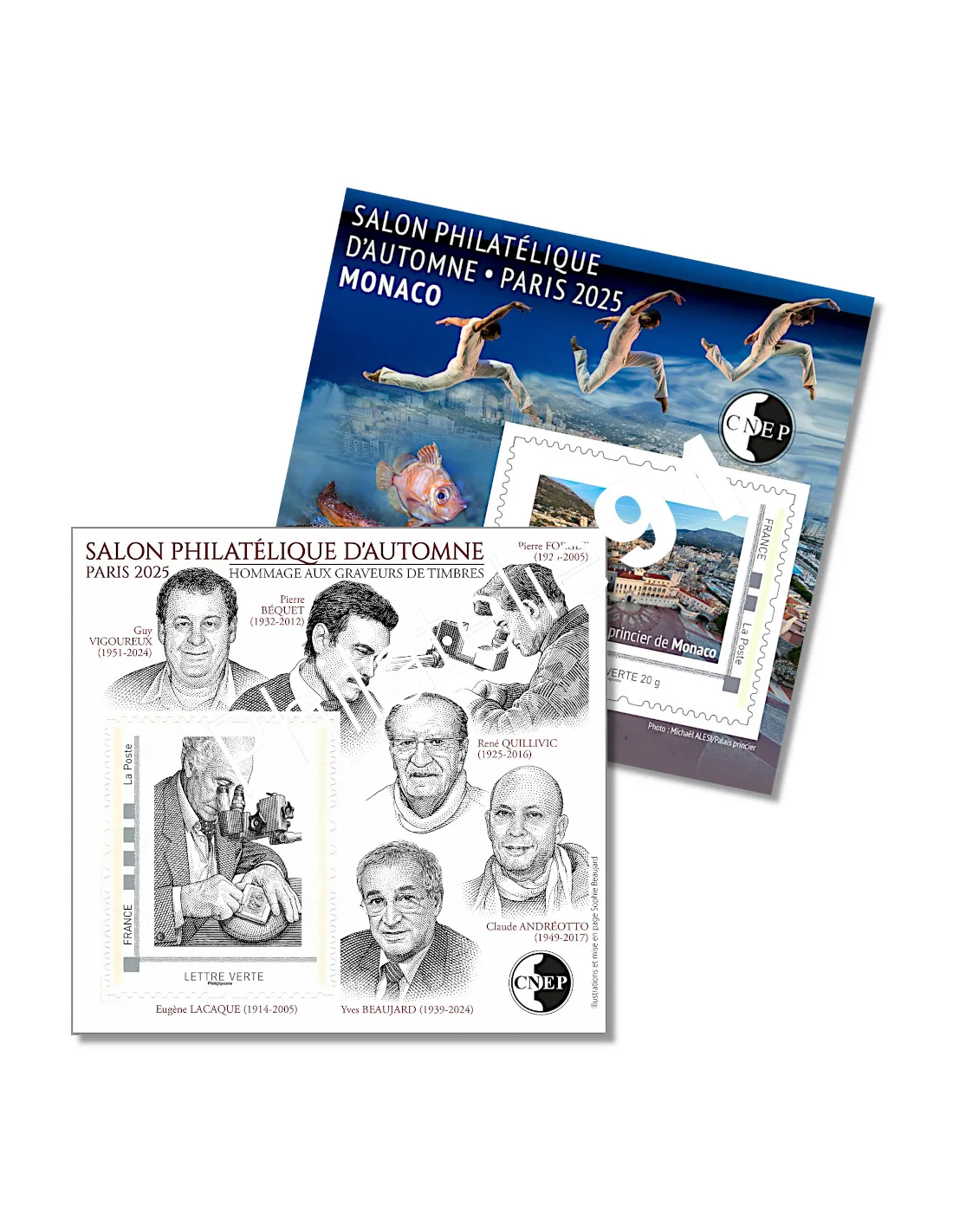 - C.N.E.P. n° 101 et 102 - 2 blocs - Salon Philatélique d'Automne Paris 2025 - Graveurs de timbres et Monaco