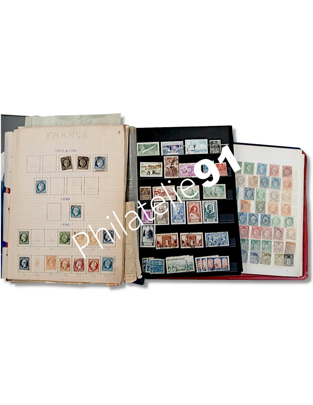Lot de timbres de France en classeurs sur pages ou pochettes diverses, toutes périodes.