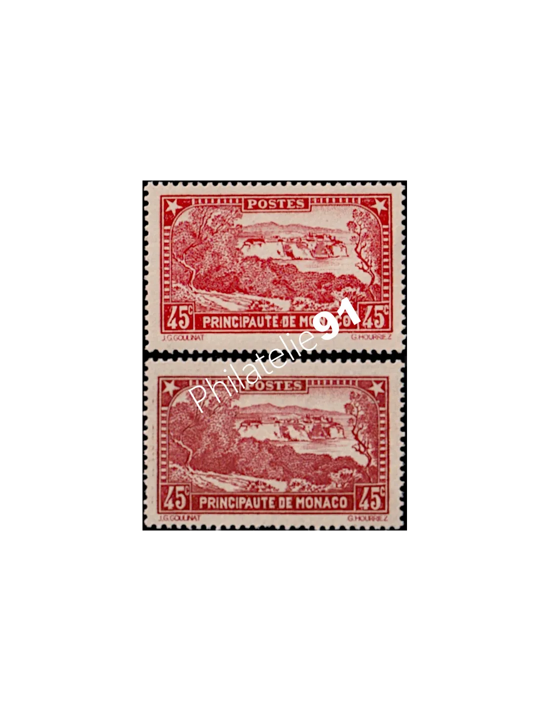 MONACO - n° 123 et 123a ** - Paysages de la Principauté, Le Rocher de Monaco vu de Cap d'Ail - variété de couleur (OL-251111-7)