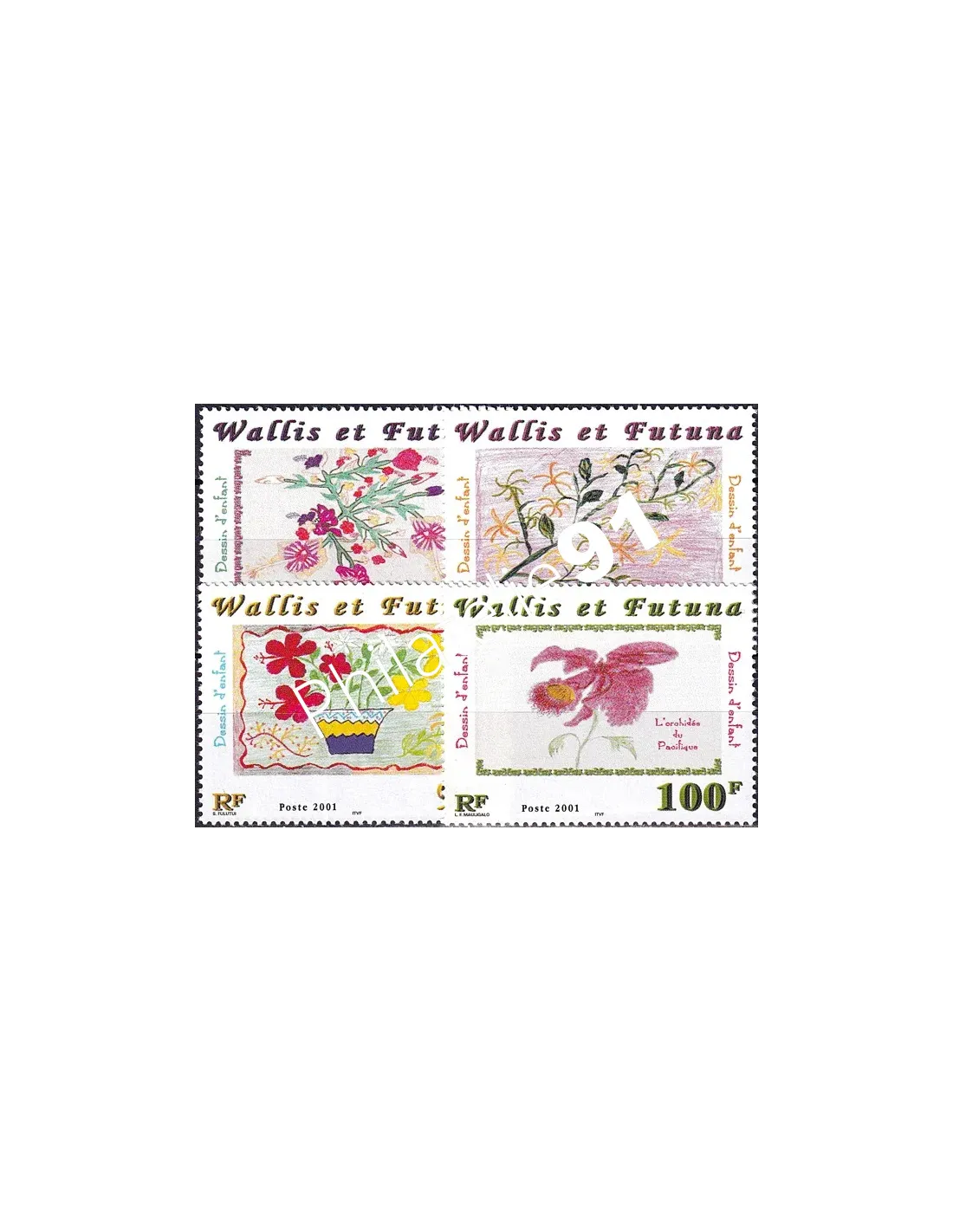 WALLIS ET FUTUNA - n° 550 à 553 ** - Dessins d'enfants - Fleurs