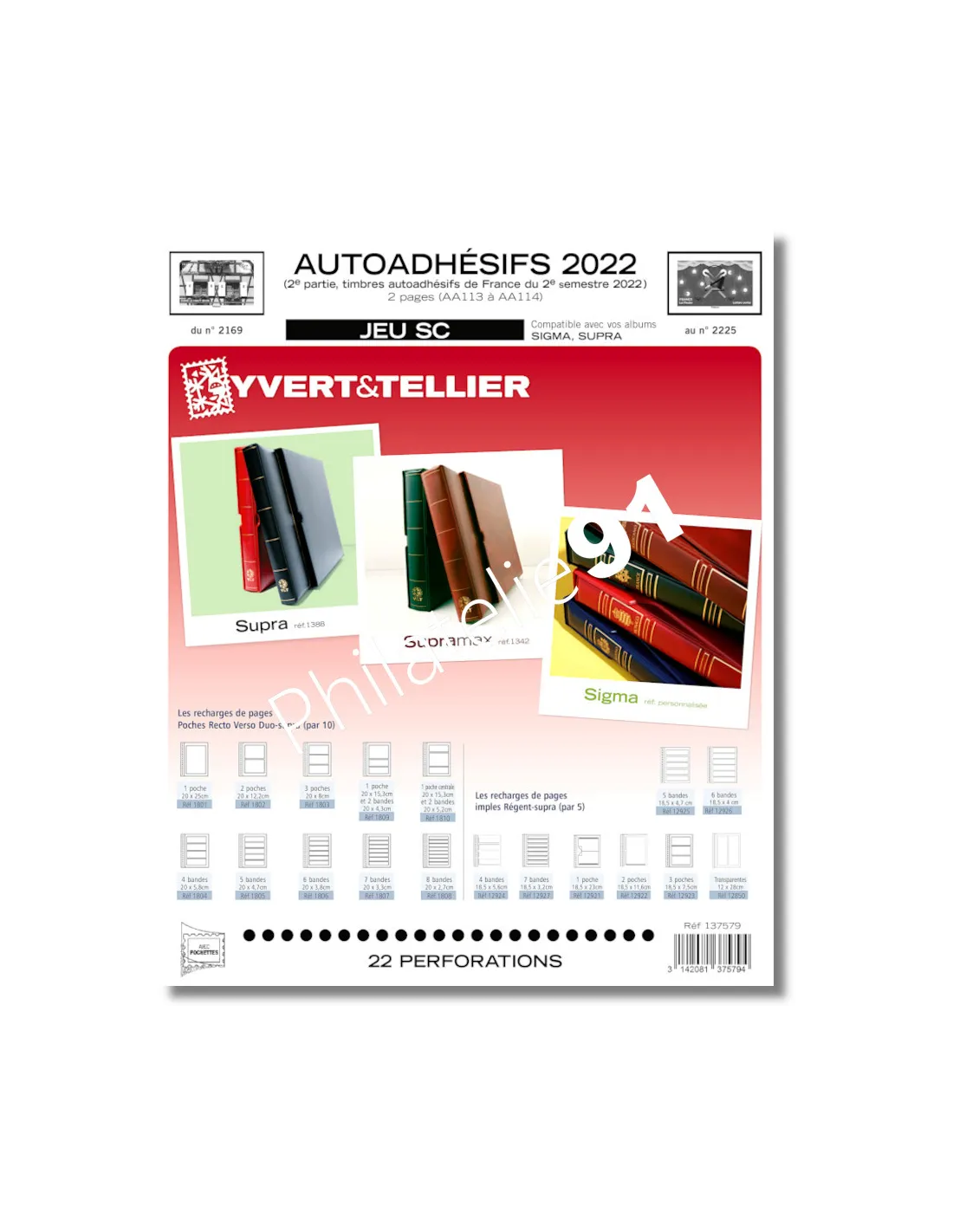 2 pages pour les timbres adhésifs émis au cours du 2ème semestre 2022.