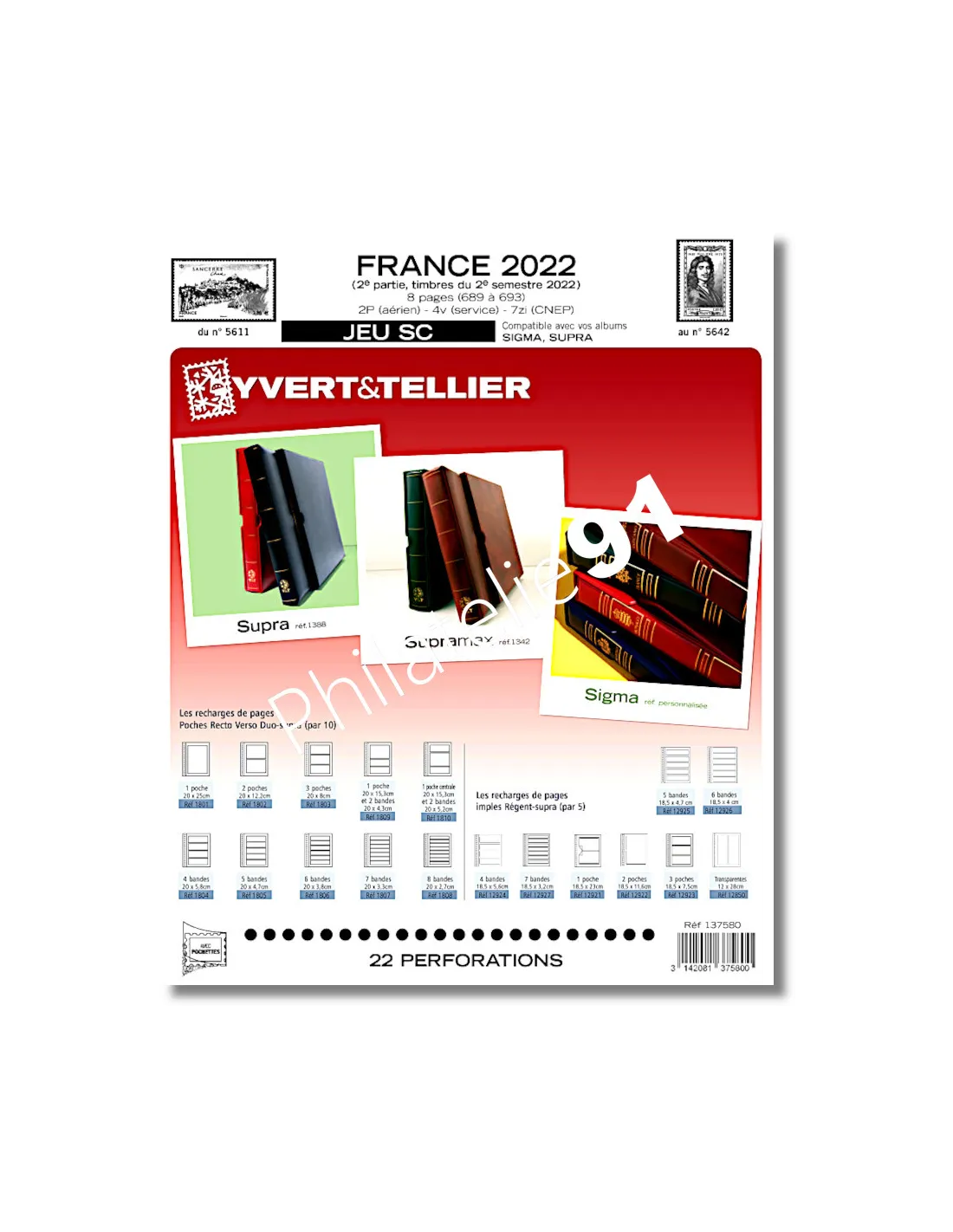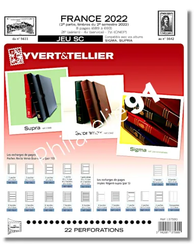 8 pages Pour les timbres gommés émis au cours du 2ème semestre 2022.